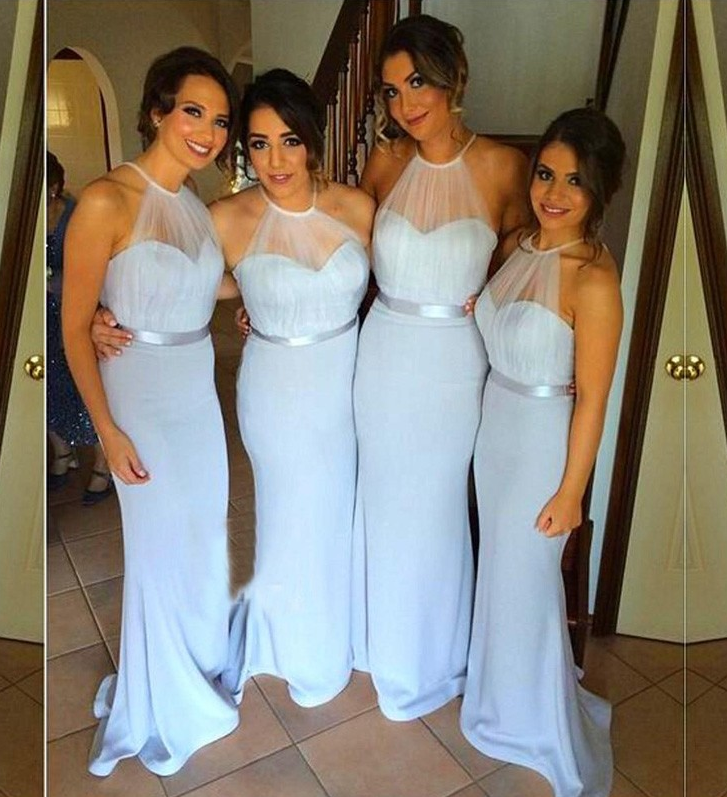 Sheath Sky Blue Sweep Train Chiffon Bridesmaid Dress
