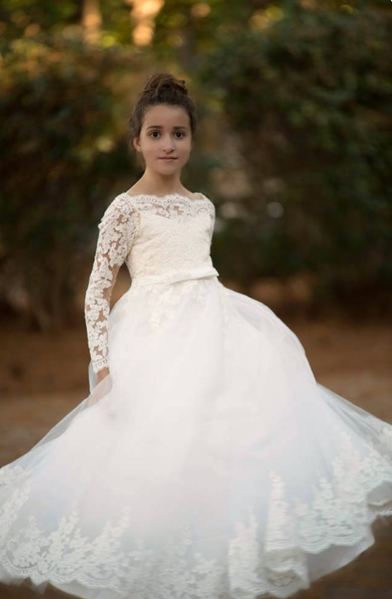 Ivory Floor length Lace Flower Girl Wedding Dresses