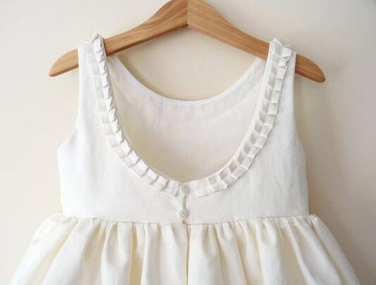 Cute Ivory Flower Girl Dress with Pleated Neckline