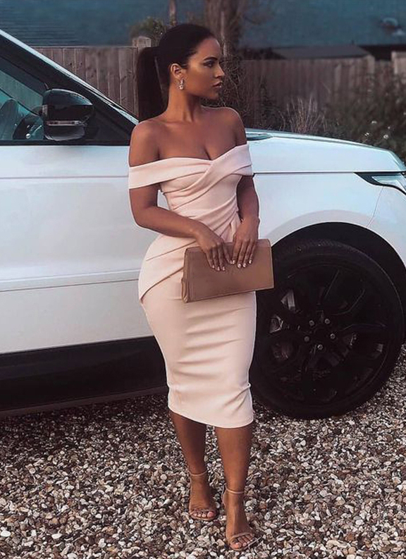 Elegant Sheath Off the Shoulder Blush Satin Prom Dresses