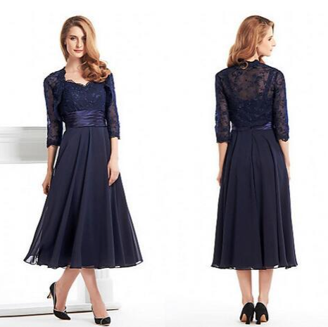 Navy Blue Lace Plus Size Women Evening Formal Gown