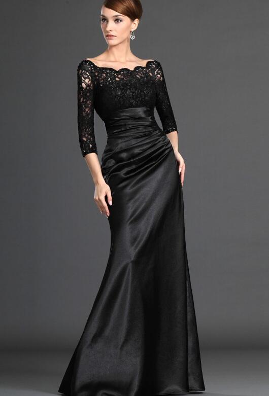 Off-the-shoulder 3 4 Sleeves Elastic Mother of Bridal Dress