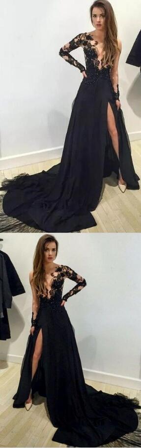 One-shoulder applique lace beading chaplel train long prom dress,evening dresses