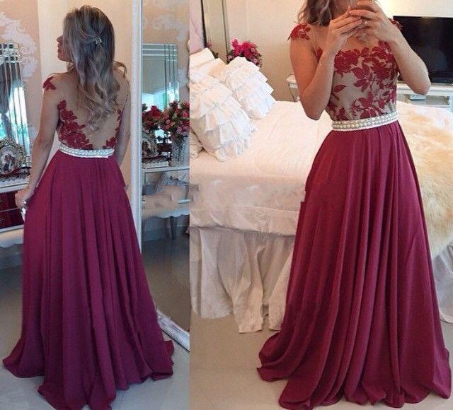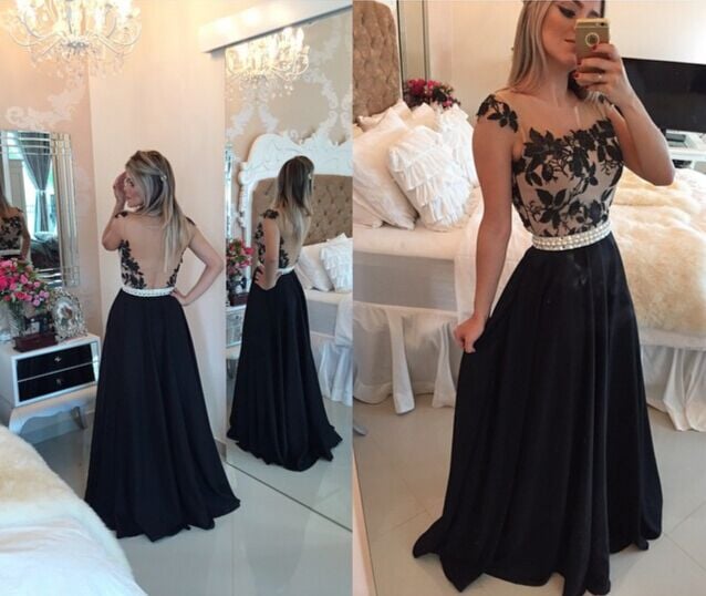 Sleeveless neck see-through back lace beading prom dresses,evening dresses