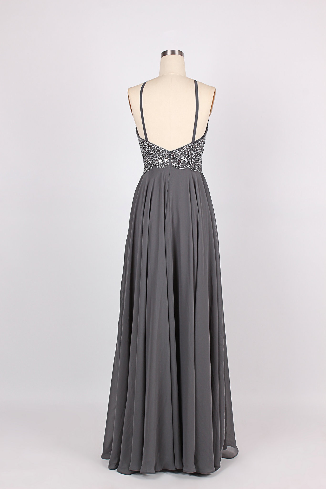Spaghetti strap beading bare back chiffon prom dress beading prom dress fashion evening gown