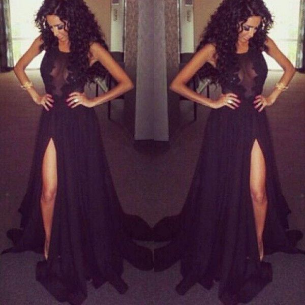 Sexy Lace Black Chiffon Stylish Long Prom Dresses,formal dress