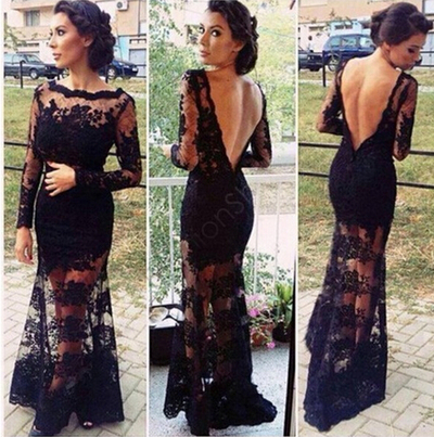 Women Sexy Black Dress Lace Slit Backless Maxi dress Club Dress,evening dress