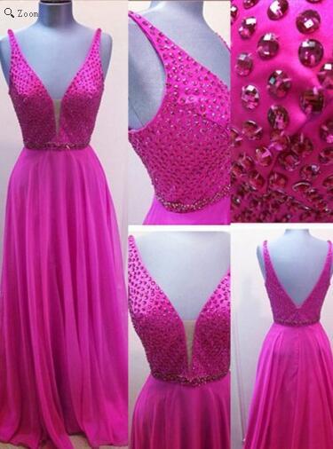 Chiffon Prom dress,sexy prom gown,v-neck prom dress,Beading Fuchsia Empire Evening formal dress
