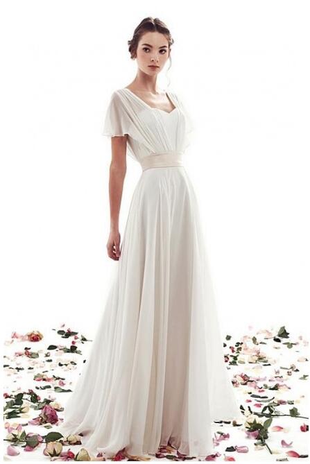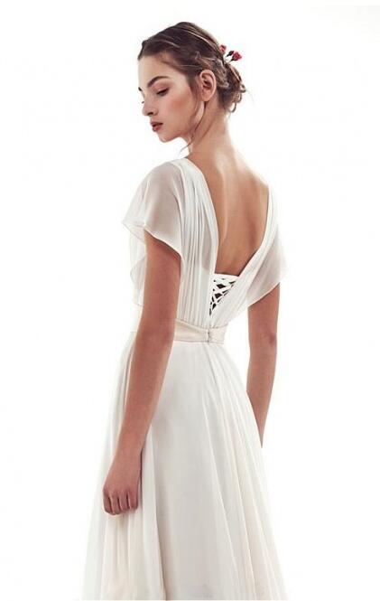 Lace-up Simple Short Sleeves A-line Vintage Wedding Dress