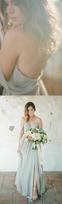 Sexy Off-the-shoulder Long Chiffon Prom Dress/Bridesmaid Dress with Side Slit