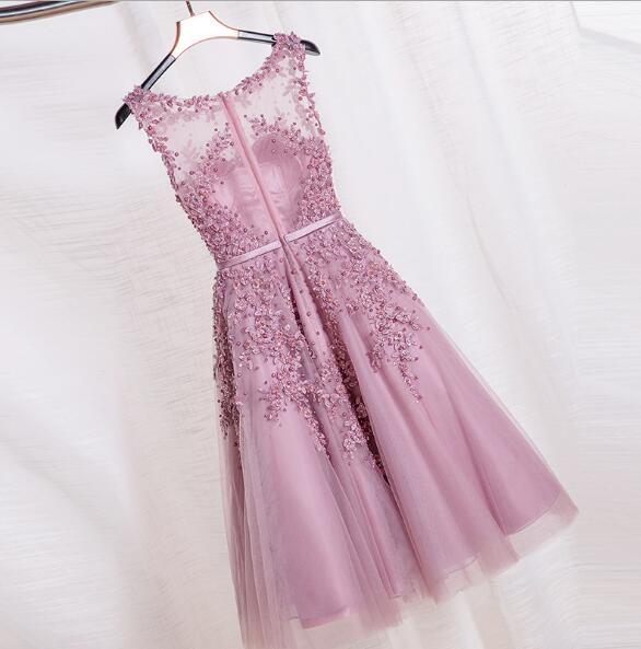 Round Neck Lace Beading Prom Dress,Short Homecoming Dress