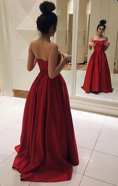 Simple Elegant Red Satin Prom Dress, Cheap Prom Dress, Sweetheart Dress for Prom