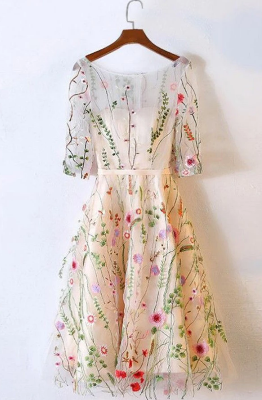 Sexy Sheer 1/2 Sleeve Short/Mini Prom Dress ,Short Homecoming Dress