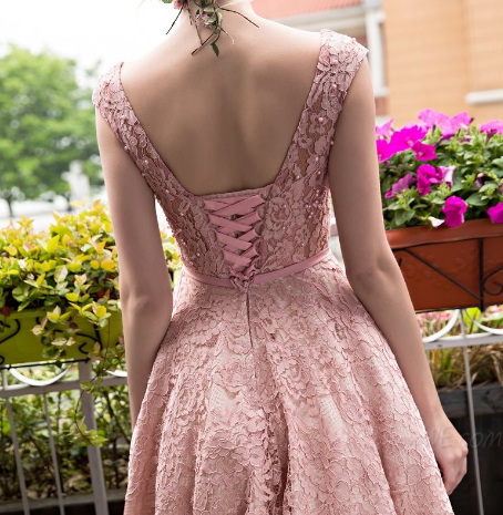 Vintage Bateau Tea-Length Lace Short Prom Dress, Homecoming Dress