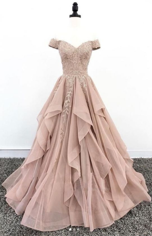Elegant Off the Shoulder Long Tulle prom dresses.Party Dresses