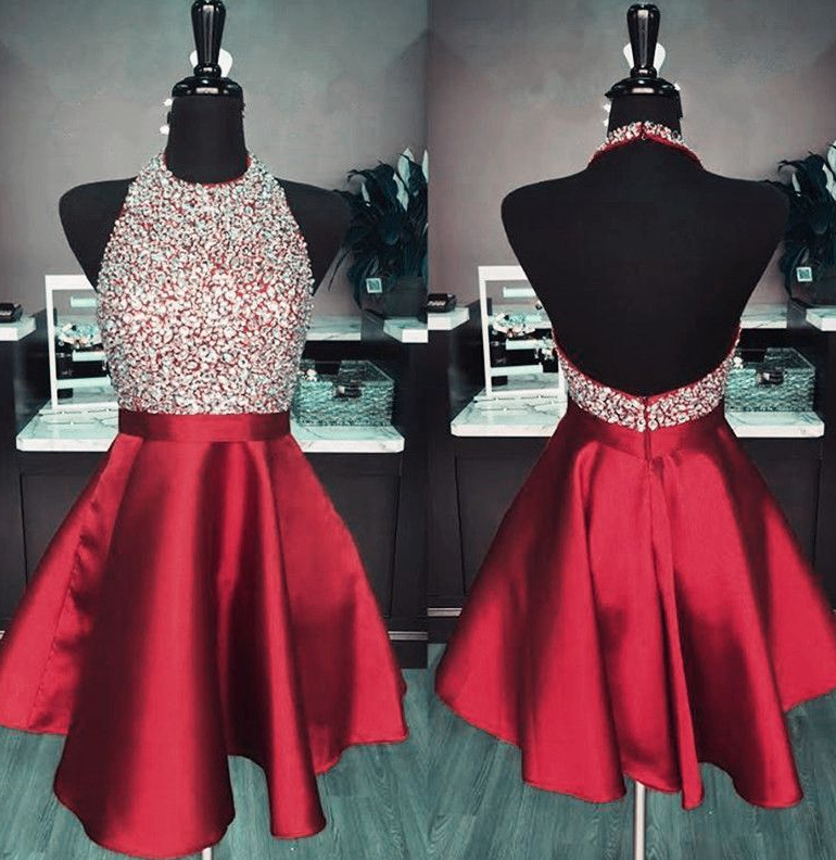 Sexy Halter Sleeveless Open Back Mini Prom Dresses,Short Graduation Dresses