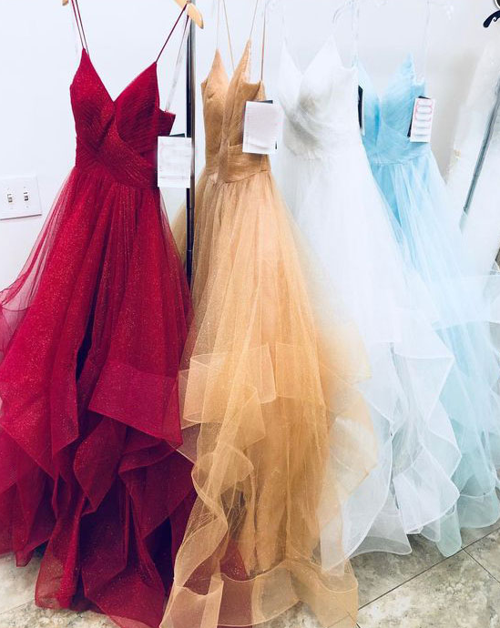 Sexy V Neck White/Dark Beige/Burgundy Organza Prom Dresses,Evening Dress
