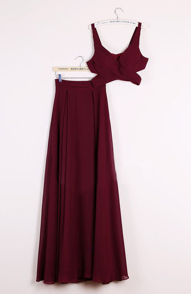 Sexy BurgundyTwo Piece Prom Dresses, 2 Piece Bridesmaid Dress