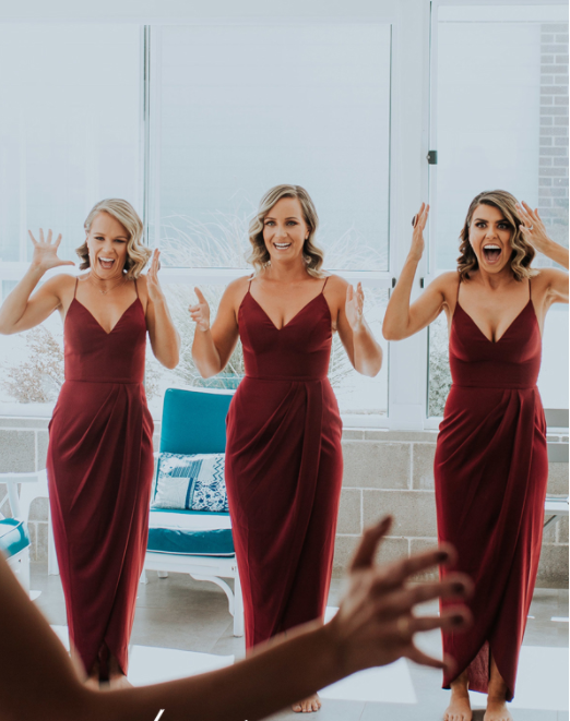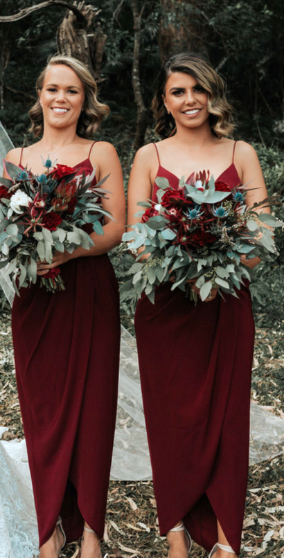 Spaghetti Strap Sheath Burgundy Bridesmaid Dresses