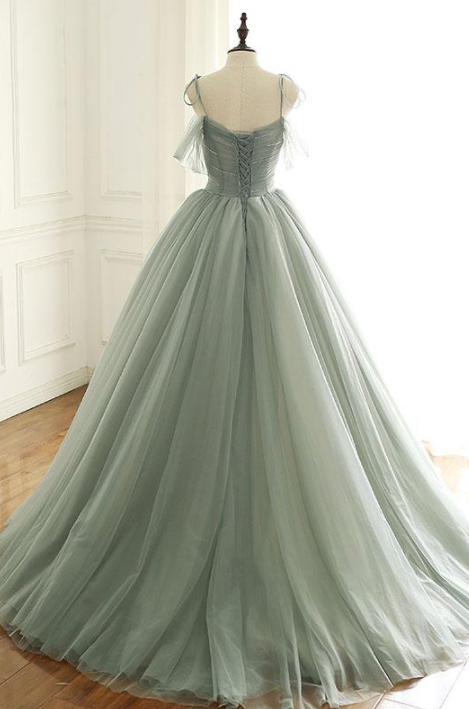 Simple ball gown prom dress with spaghetti straps, sage green sweet 16 dress prom gown