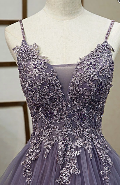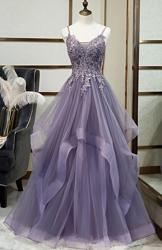 Elegant A Line Purple Long Prom/Evening Dresses with Appliques