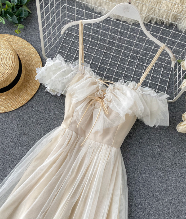 Cute champagne tulle dress summer dress