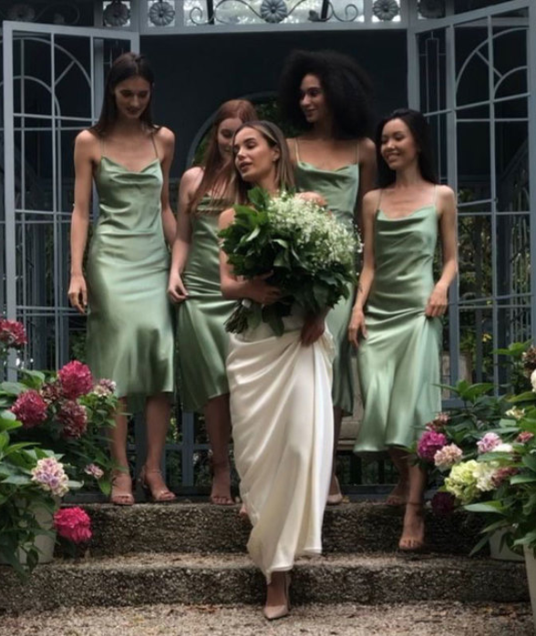 Spaghetti Straps Tea Length Bridesmaid Dresses