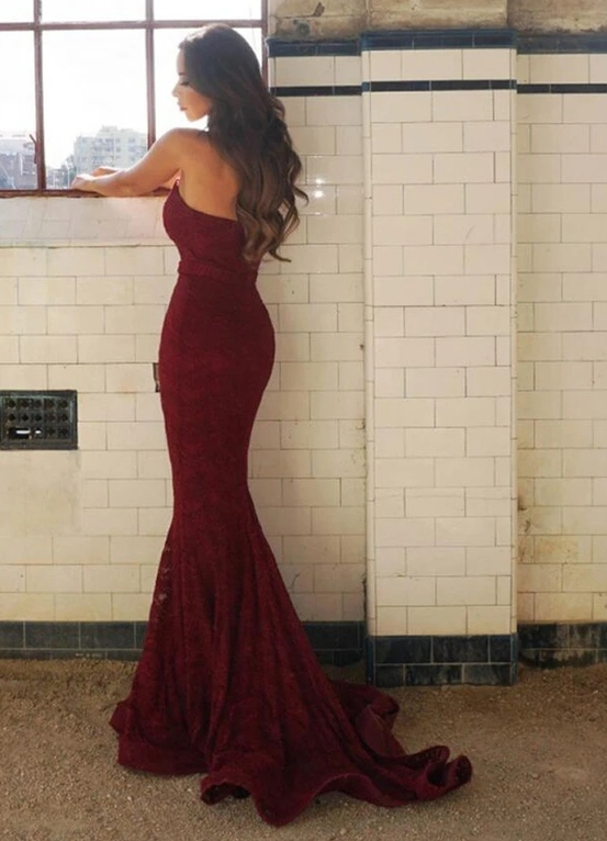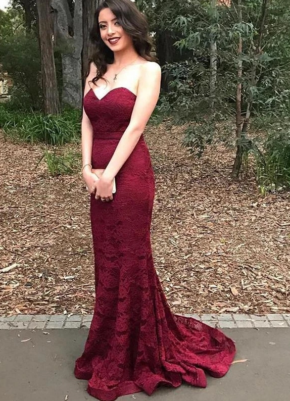 Sweetheart Burgundy Lace Mermaid Prom Dresses