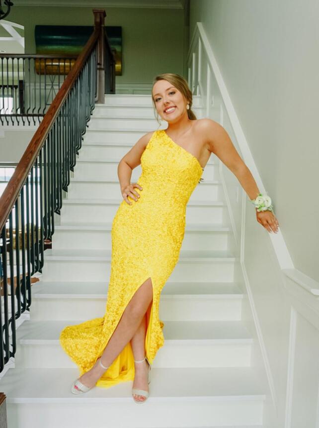 Sexy One Shoulder Yellow Sequin Long Prom Dress