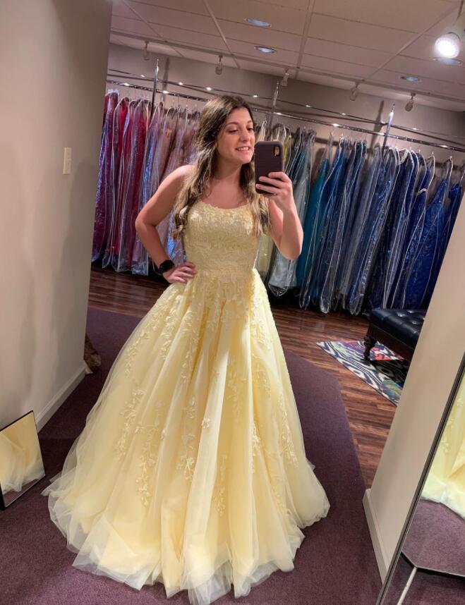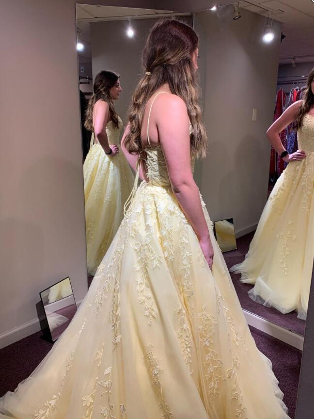 Princess Yellow Long Prom Dress with Lace