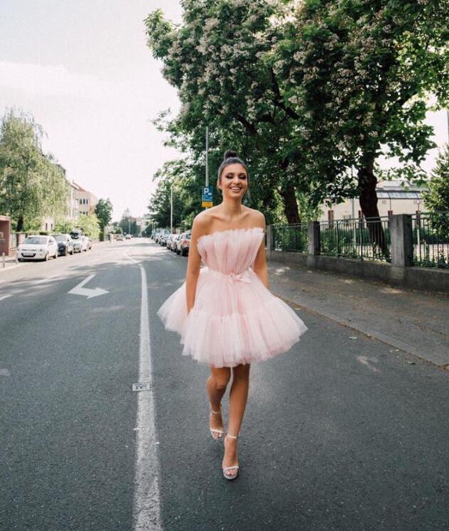 Sexy Pink tulle short prom dress homecoming dress