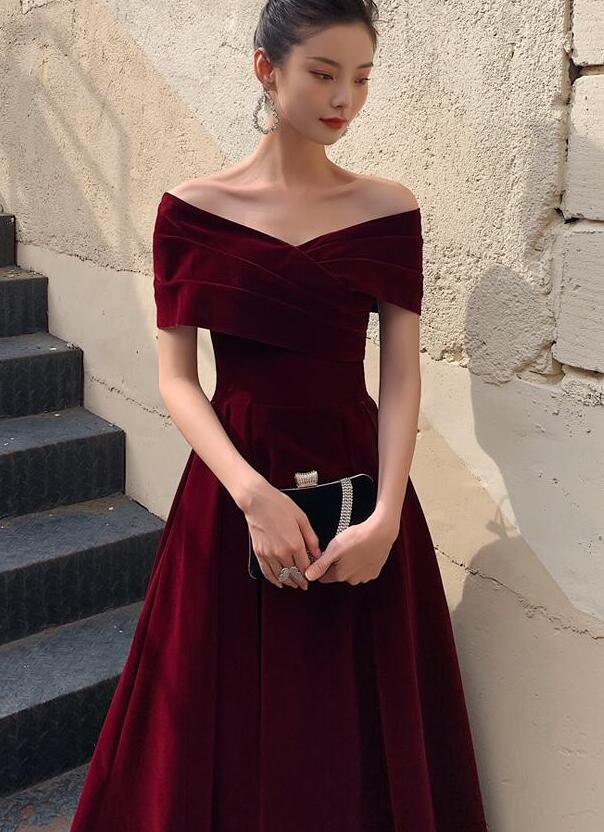 Elegant Off Shoulder Velvet Sweetheart Burgundy Prom Dress