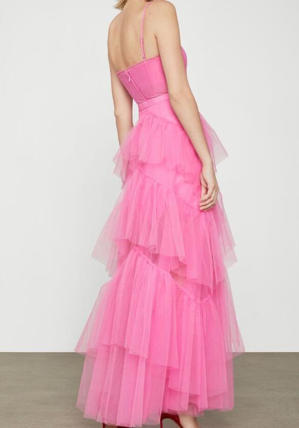 Simple Hot Pink Tiered Tulle Long Prom Dress