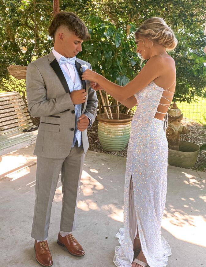 Mermaid Hot Pink Sequins Long Prom Dress with Split