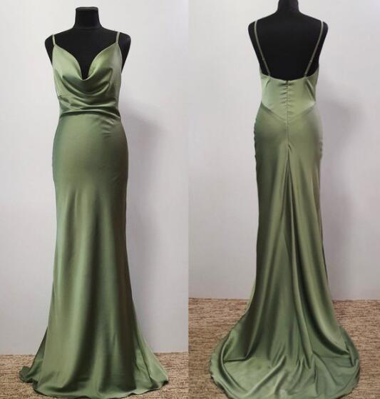 Spaghetti Straps Cowl Neck Silk Satin Long Prom Dresses