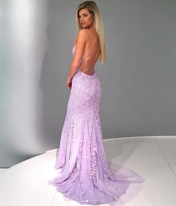 Beautiful A Line Lilac Lace Tulle Prom Dresses