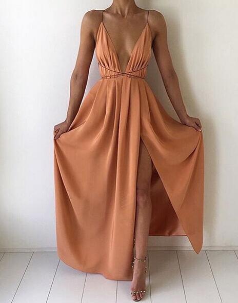 Spaghetti Strap V Neck Prom Dress With Front Split