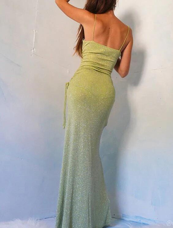 Spaghetti Straps Sheath Long Evening Dress With Split Front