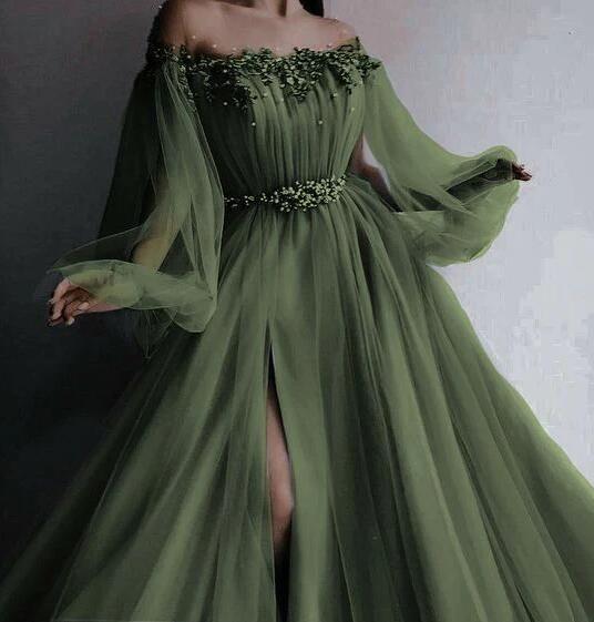 Vintage Split Tulle Prom Dress Bubble Sleeves