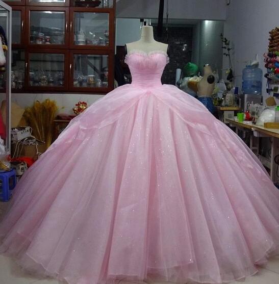 Vintage Ball Gown Pink Tulle Prom Dresses