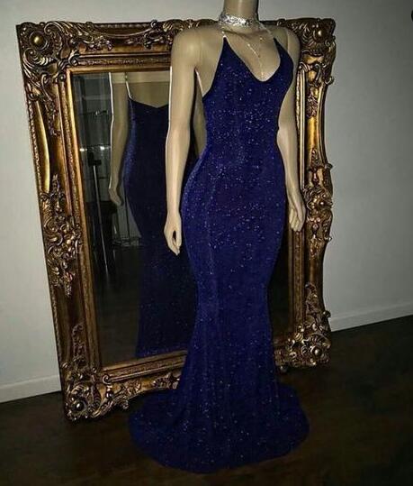 Mermaid Sleeveless Royal Blue Sequin Prom Dresses