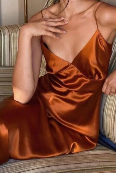 Spaghetti Straps Orange Tea Length Silk Prom Dress