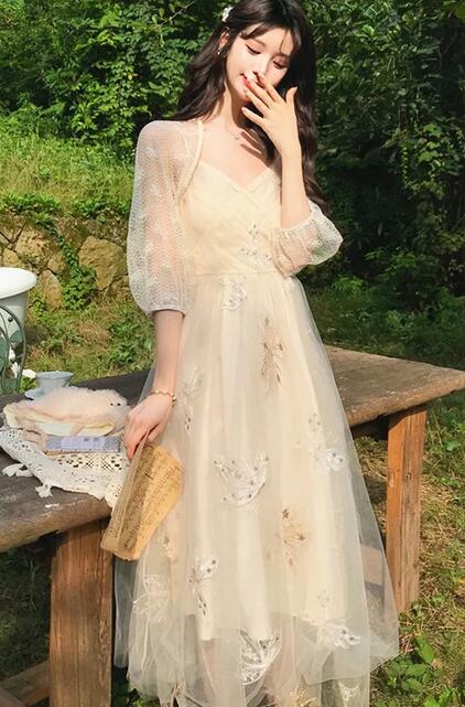 Beautiful A Line Vintage Butterfly Embroidered Lace Fairy Prom Dress
