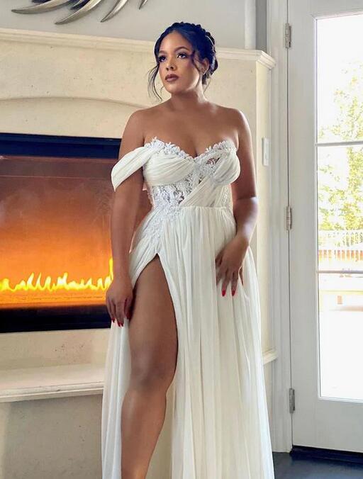Sweetheart Off Shoulder Long Chiffon Prom Dresses With Lace