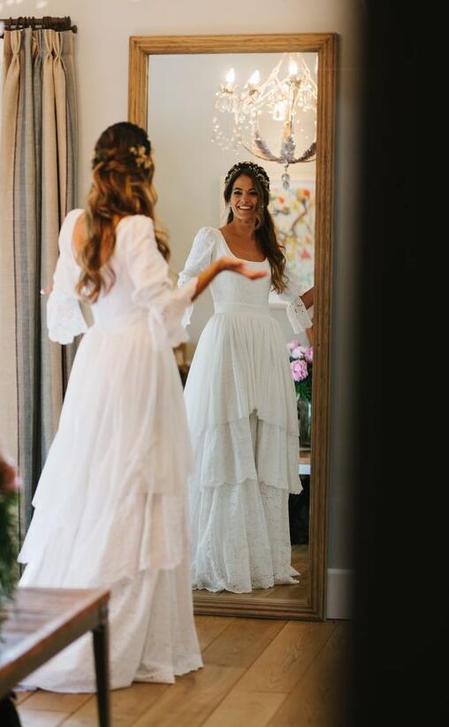 Vintage A-line Bohemian Backless Mermaid Wedding Gown with Sleeves