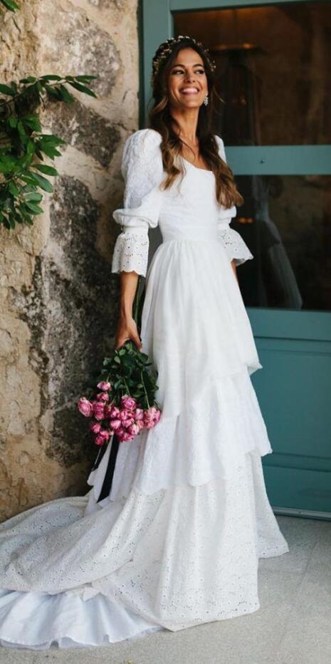 Vintage A-line Bohemian Backless Ivory Mermaid Wedding Gown with Sleeves
