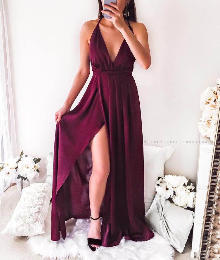 Simple A Line Wine Red Chiffon Formal Prom Dress