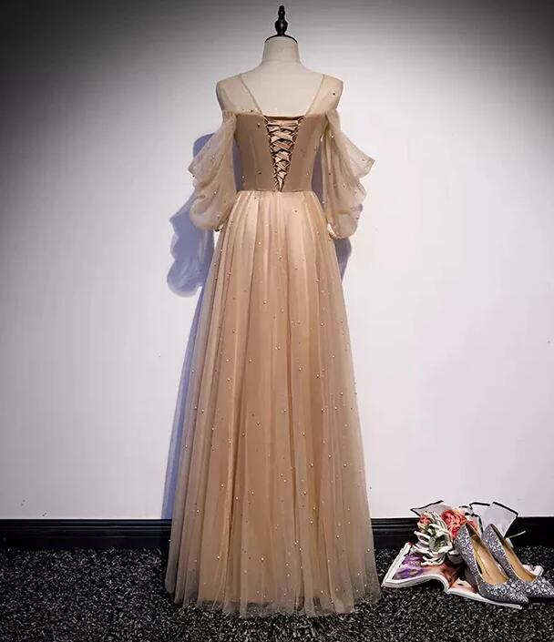 Simple A line Long Sleeves Tulle Prom Dresses