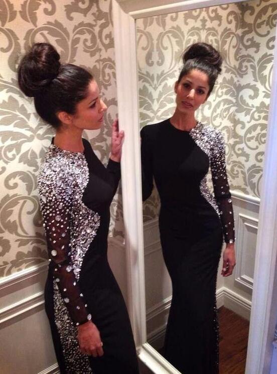 Sexy O-Neck Black Stain Prom Dress With Long Sleeves