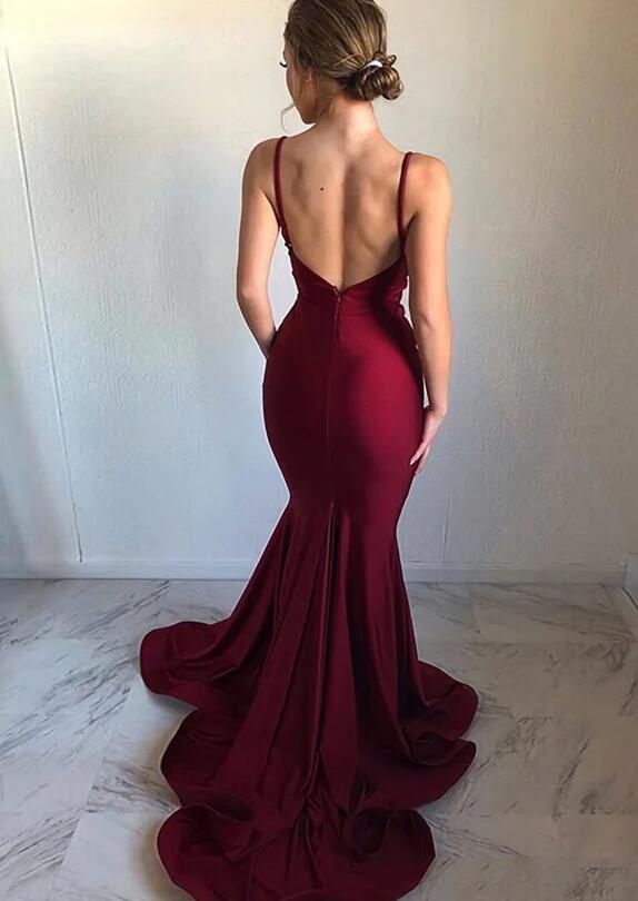 Mermaid Burgundy Backless Long Satin Prom Dresses